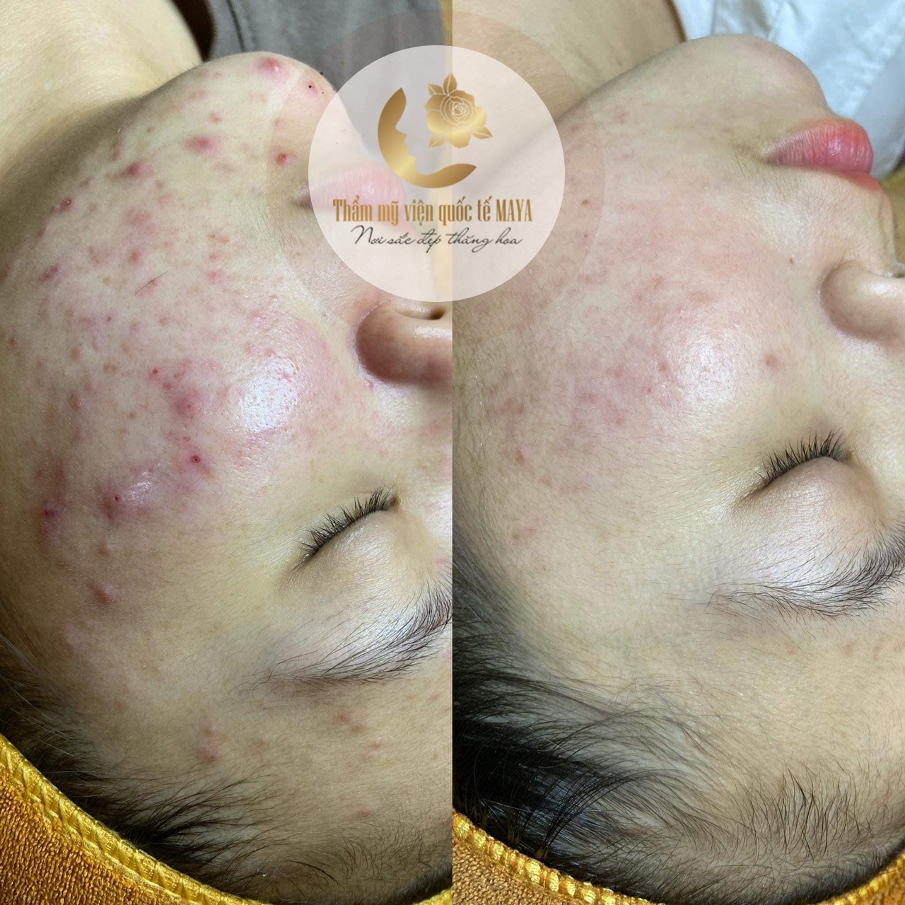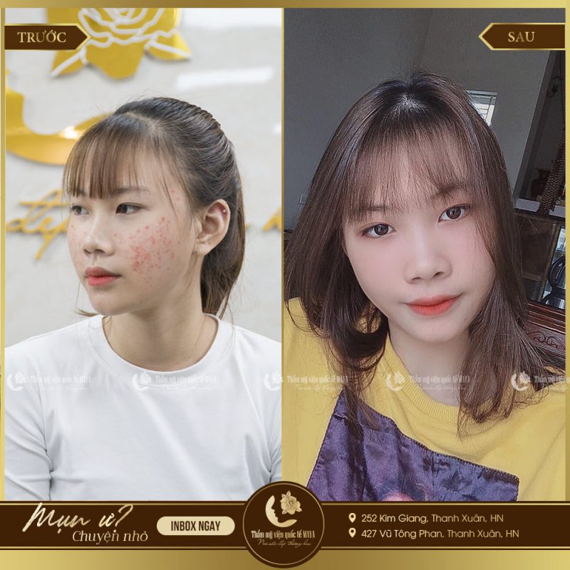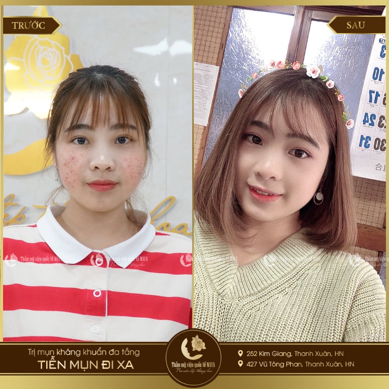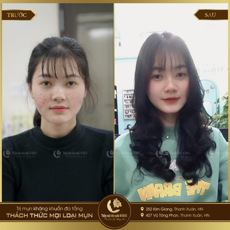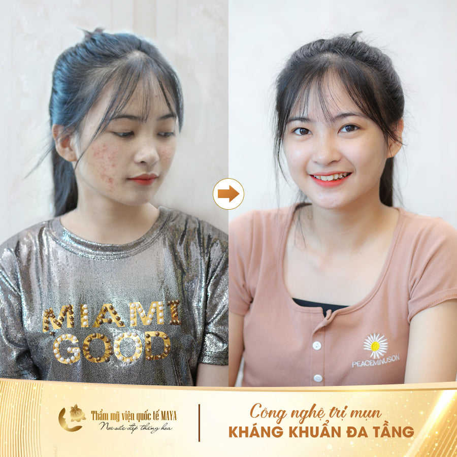Để thấy được công nghệ trị mụn kháng khuẩn đa tầng mang lại hiệu quả trị mụn cao và an toàn, chúng ta hãy cùng xem một số hình ảnh của khách hàng trước và sau khi kết thúc liệu trình trị mụn tại Thẩm mỹ viện quốc tế MAYA nhé: